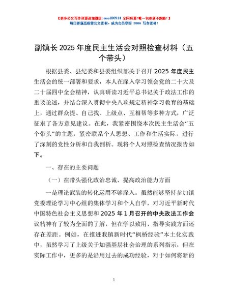 / 副镇长2025年度民主生活会对照检查材料(五个带头)