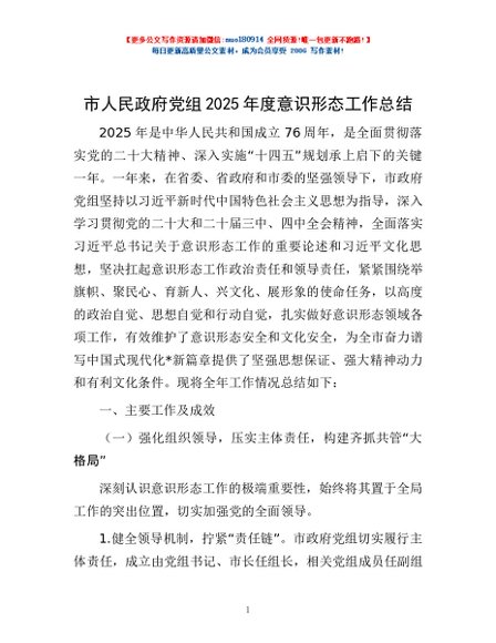 / 市人民政府党组2025年度意识形态工作总结