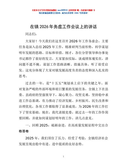 / 在镇2026年务虚工作会议上的讲话