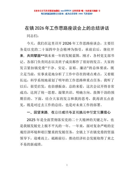 / 在镇2026年工作思路座谈会上的总结讲话