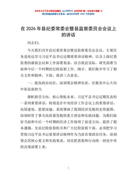 / 在2026年县纪委常委会暨县监察委员会会议上的讲话