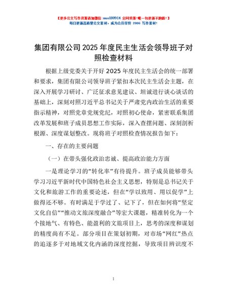 / 集团有限公司2025年度民主生活会领导班子对照检查材料