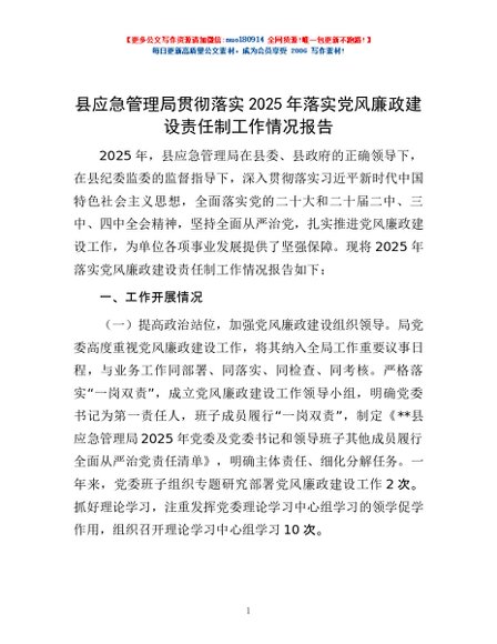/ 县应急管理局贯彻落实2025年落实党风廉政建设责任制工作情况报告