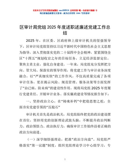 / 区审计局党组2025年度述职述廉述党建工作总结