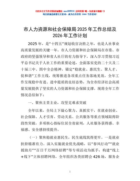 / 市人力资源和社会保障局2025年工作总结及2026年工作计划