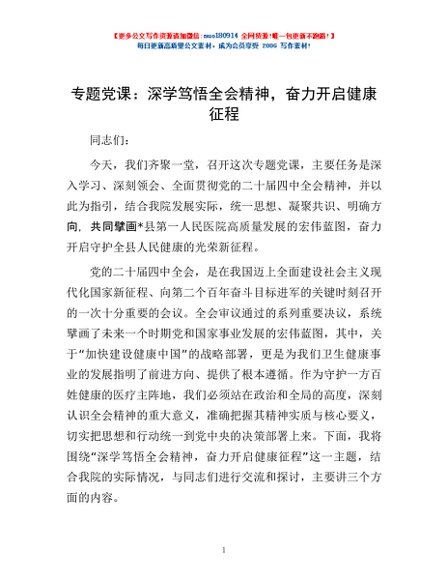 / 专题党课:深学笃悟全会精神,奋力开启健康征程