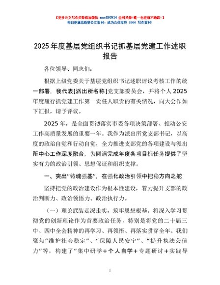 / 2025年度基层党组织书记抓基层党建工作述职报告
