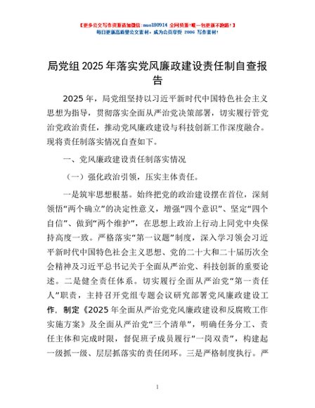 / 局党组2025年落实党风廉政建设责任制自查报告