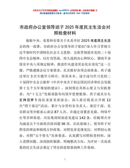 / 市政府办公室领导班子2025年度民主生活会对照检查材料