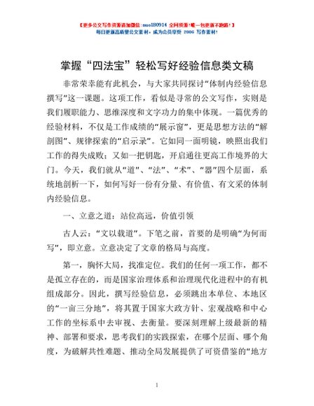 / 掌握“四法宝”轻松写好经验信息类文稿