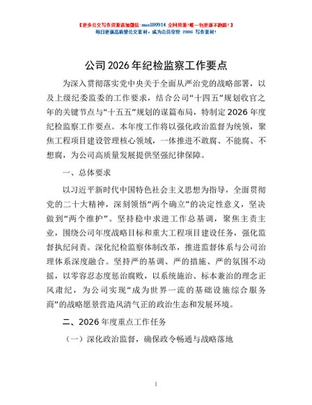 / 公司2026年纪检监察工作要点