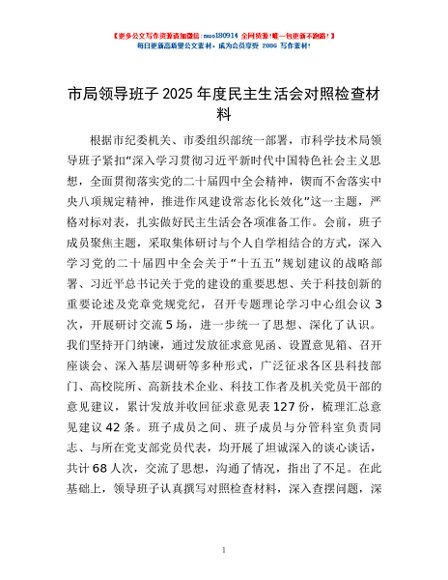 / 市局领导班子2025年度民主生活会对照检查材料