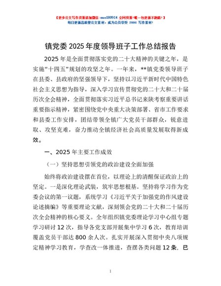 / 镇党委2025年度领导班子工作总结报告