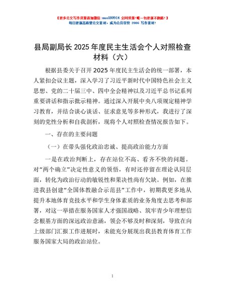 / 县局副局长2025年度民主生活会个人对照检查材料(六)