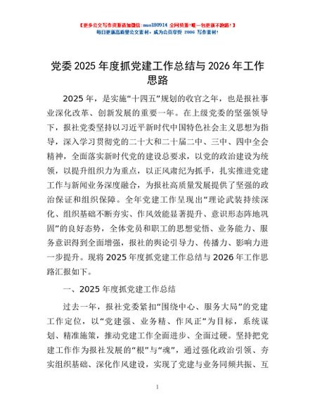 / 党委2025年度抓党建工作总结与2026年工作思路
