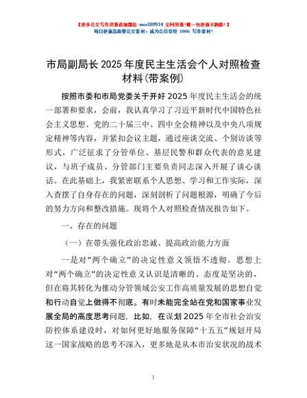 / 市局副局长2025年度民主生活会个人对照检查材料(带案例)