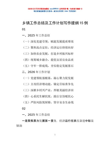 / 乡镇工作总结及工作计划写作提纲15例