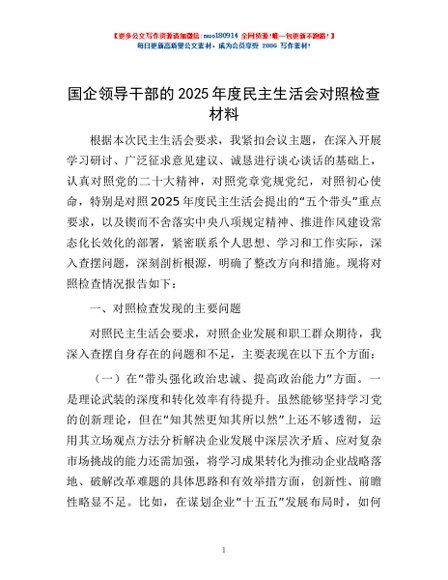 / 国企领导干部的2025年度民主生活会对照检查材料