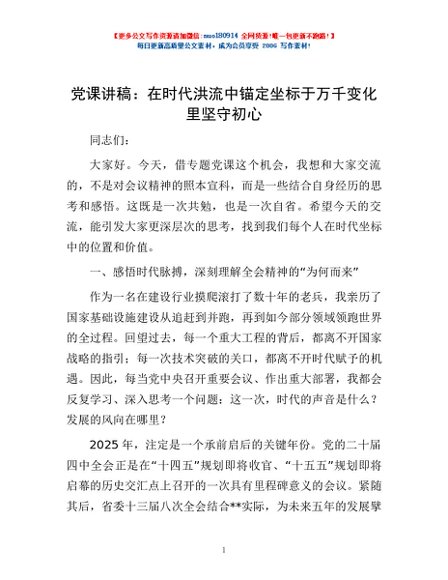/ 党课讲稿:在时代洪流中锚定坐标于万千变化里坚守初心
