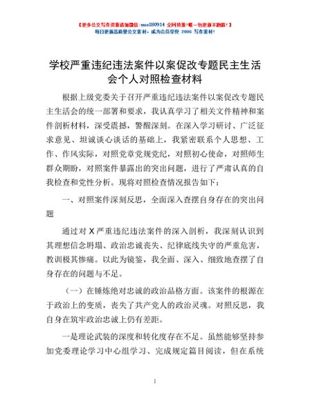 / 学校严重违纪违法案件以案促改专题民主生活会个人对照检查材料