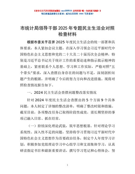 / 市统计局领导干部2025年专题民主生活会对照检查材料