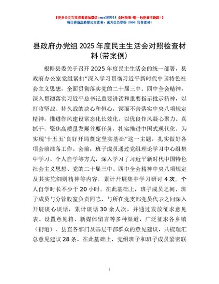 / 县政府办党组2025年度民主生活会对照检查材料(带案例)