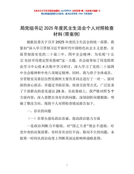 / 局党组书记2025年度民主生活会个人对照检查材料(带案例)
