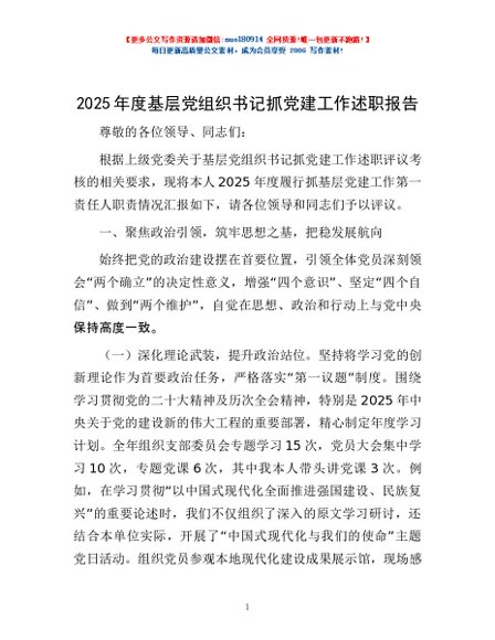 / 2025年度基层党组织书记抓党建工作述职报告