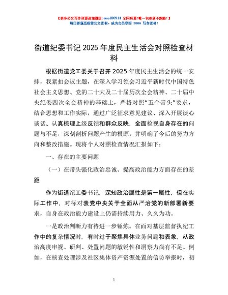 / 街道纪委书记2025年度民主生活会对照检查材料