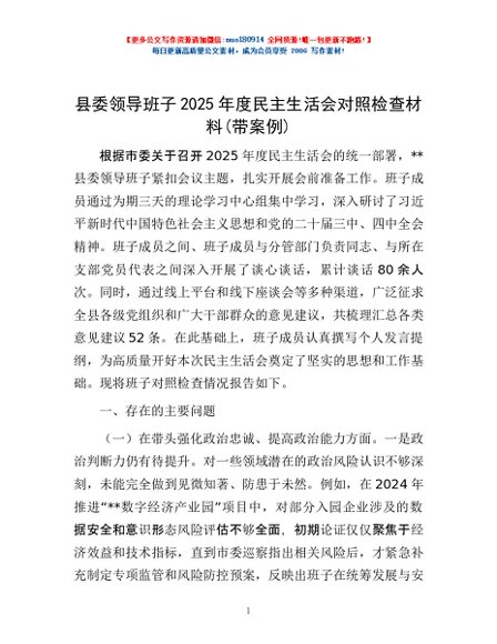 / 县委领导班子2025年度民主生活会对照检查材料(带案例)