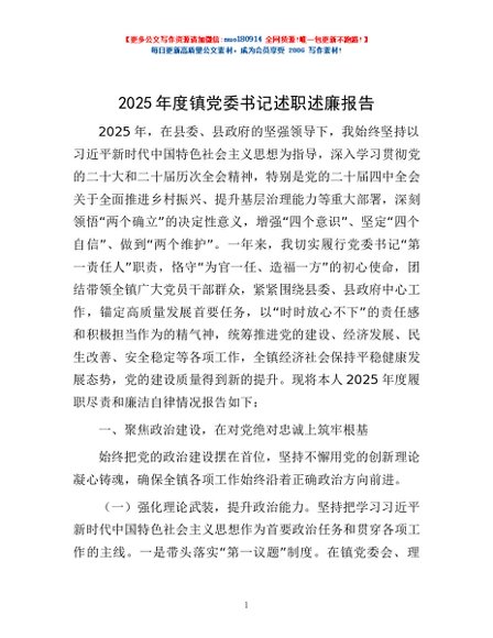 / 2025年度镇党委书记述职述廉报告