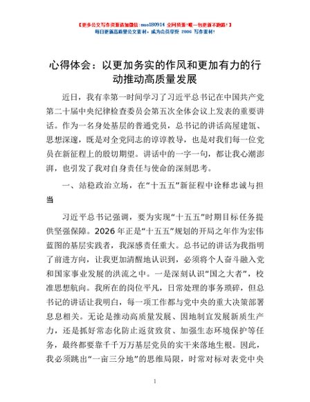 / 心得体会:以更加务实的作风和更加有力的行动推动高质量发展