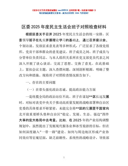 / 区委2025年度民主生活会班子对照检查材料