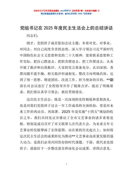 / 党组书记在2025年度民主生活会上的总结讲话
