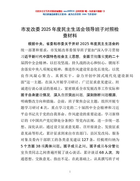 / 市发改委2025年度民主生活会领导班子对照检查材料
