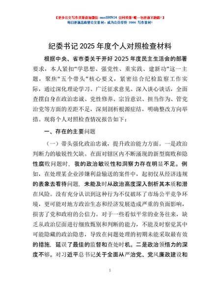 / 纪委书记2025年度个人对照检查材料