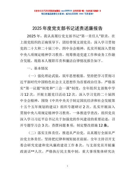/ 2025年度党支部书记述责述廉报告