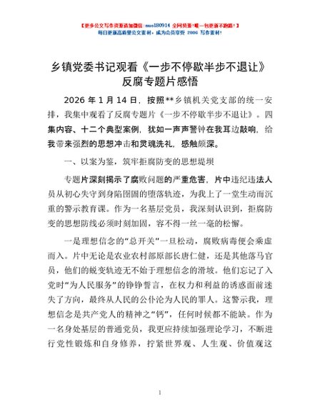 / 乡镇党委书记观看《一步不停歇半步不退让》反腐专题片感悟