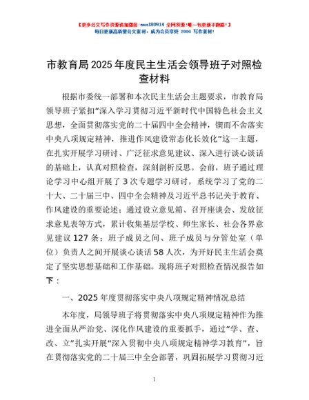/ 市教育局2025年度民主生活会领导班子对照检查材料