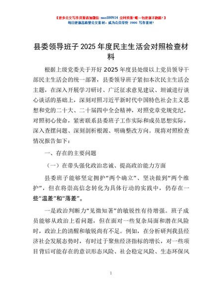 / 县委领导班子2025年度民主生活会对照检查材料