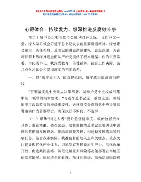 / 心得体会:持续发力,纵深推进反腐败斗争