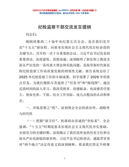 / 纪检监察干部交流发言提纲