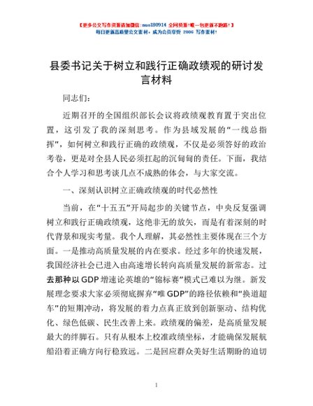 / 县委书记关于树立和践行正确政绩观的研讨发言材料