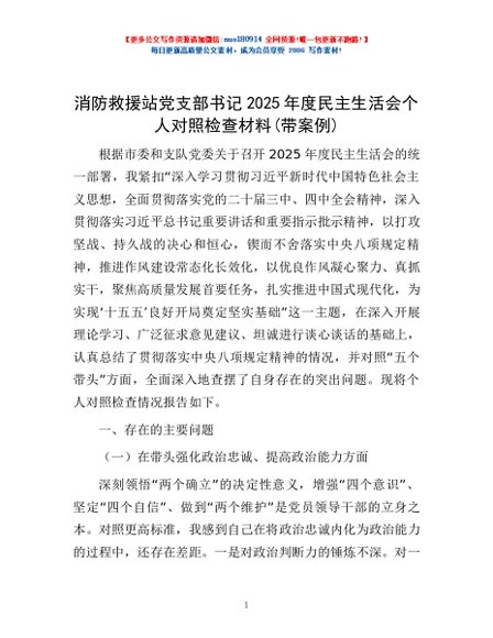 / 消防救援站党支部书记2025年度民主生活会个人对照检查材料(带案例)