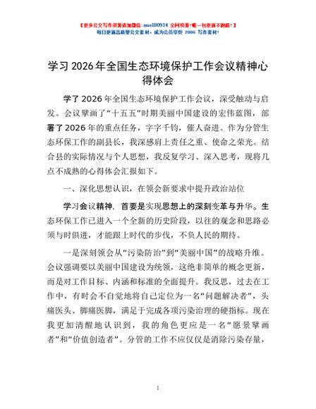 / 学习2026年全国生态环境保护工作会议精神心得体会