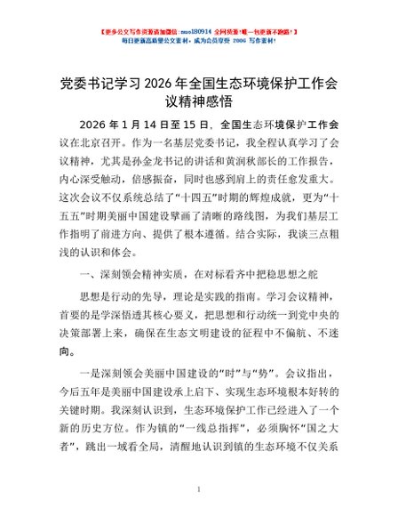 / 党委书记学习2026年全国生态环境保护工作会议精神感悟