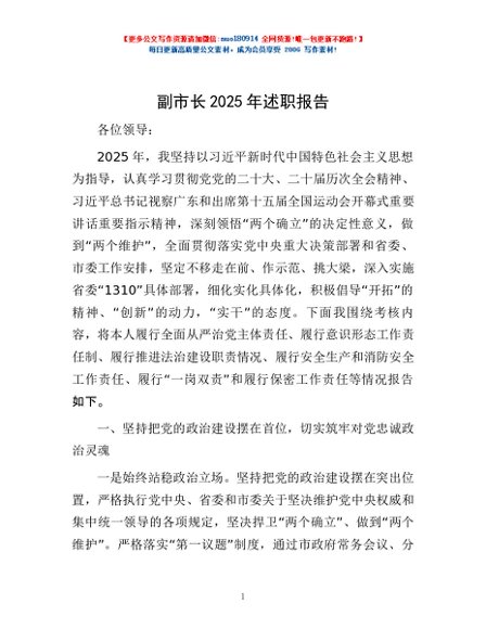 / 副市长2025年述职报告