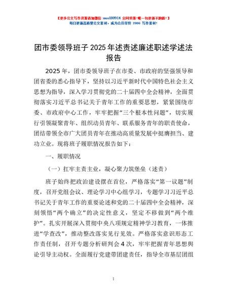 / 团市委领导班子2025年述责述廉述职述学述法报告