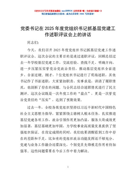 / 党委书记在2025年度党组织书记抓基层党建工作述职评议会上的讲话