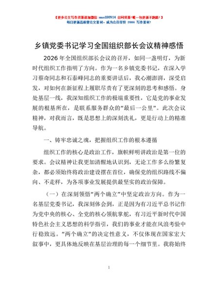 / 乡镇党委书记学习全国组织部长会议精神感悟